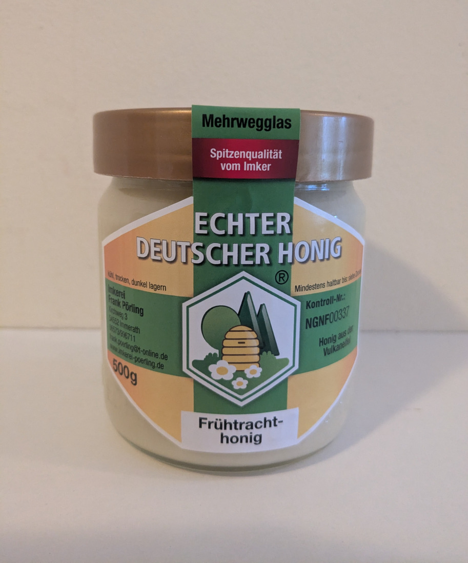 Frühtrachthonig ist der erste Honig des Jahres. Der Geschmack ist aromatisch-mild und süß, bestehend vor allem aus Pollen der Obstbäume, aber auch von Ahorn, Schlehe, Löwenzahn.